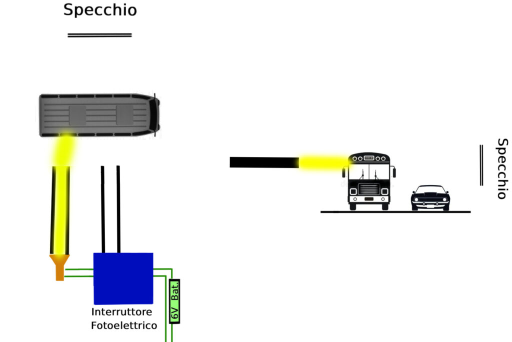 • Nel momento in cui l’autobus attraversa il fascio di luce, il raggio non raggiunge più l’interruttore fotoelettrico.
