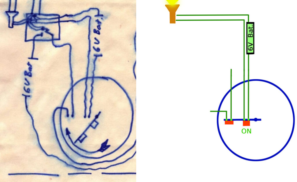 Nel primo percorso è la batteria da 6 volt a fornire corrente alla torcia, facendola accendere.
