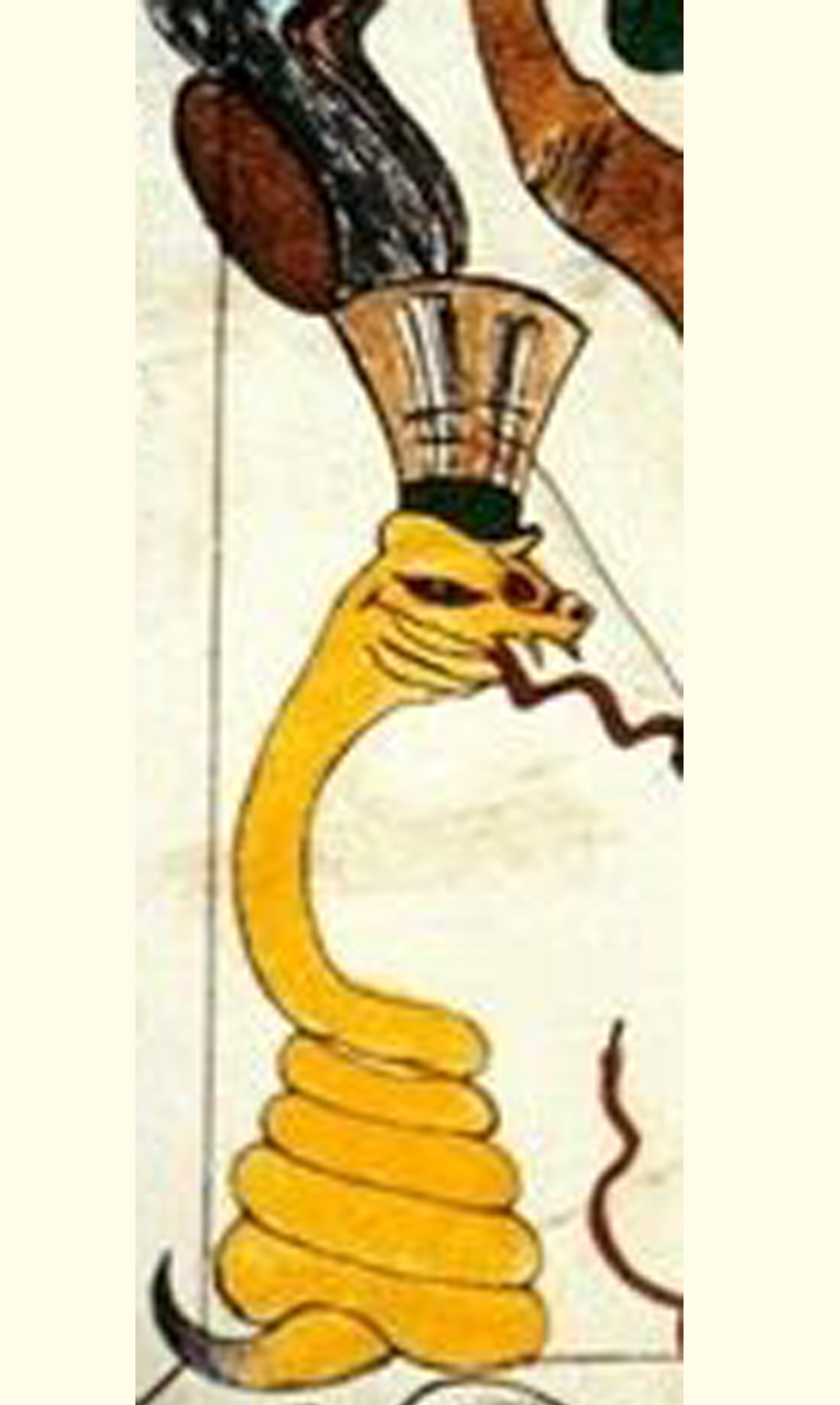 Essendo il serpente assimilato a una tromba, la sua colorazione gialla richiama proprio questa doppia natura. (vedi: Il passaggio musicale)