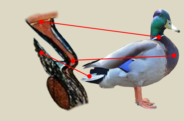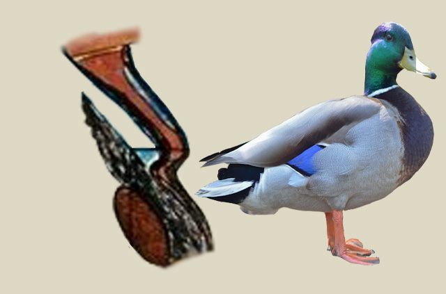 La stranezza complessiva della figura, infatti, nasce proprio dalla volontà di farle esprimere significati ulteriori, diversi da quelli legati alla semplice rappresentazione dell’animale. Le forme ibride e gli innesti visivi che la compongono non sono casuali: sono il risultato di un compromesso simbolico, un adattamento necessario affinché il germano reale possa fondersi con altri elementi e concetti che l’artista intende evocare. (vedi: Il passaggio musicale — Riferimenti agli Stati Uniti).