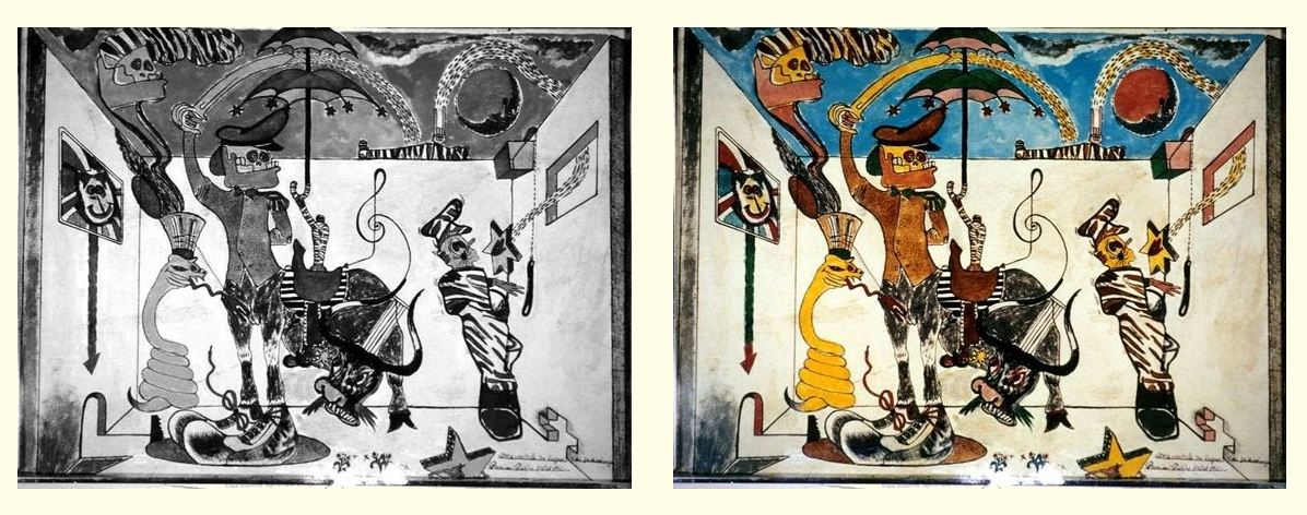 Un dato che, se si accetta l’ipotesi secondo cui la colorazione sarebbe stata eseguita da Pacciani, implicherebbe che egli fosse a conoscenza delle soluzioni cromatiche presenti nelle opere dell’artista cileno.