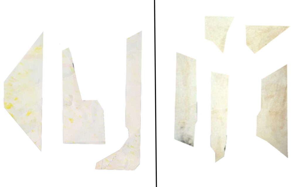 Osservando con attenzione questa sezione, notiamo come l’autore abbia scelto di rappresentare solo alcune parti dell’animale: il collo arcuato, le ali, il collare bianco.
