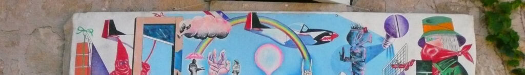 Ciò che rende questo elemento ancora più curioso è il modo in cui è stato ottenuto. Il celeste non sembra essere stato applicato come un colore autonomo, ma appare come una porzione del cielo che “invade” volontariamente il muro, creando l’impressione di una sbavatura. Tuttavia, osservando il resto della superficie, notiamo che la colorazione del cielo è estremamente precisa e non oltrepassa mai i bordi della parete.