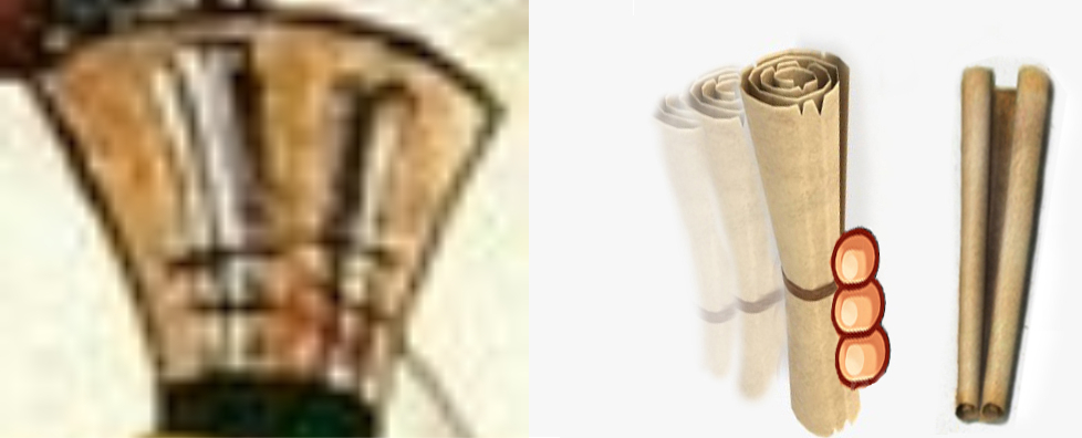 Questa resa cromatica non può essere il risultato di una semplice casualità ottica: rivela invece una scelta pienamente consapevole. L’autore che ha applicato il colore mostra di sapere che non si tratta di un semplice “serpente con il cappello”, ma di una tromba:sa bene che quel cappello corrisponde alla campana dello strumento, capace di riflettere la schiena del generale, e interviene cromaticamente con piena cognizione di questo rapporto. La tinta adottata non è dunque un riempimento generico, ma una decisione calibrata per rendere leggibile il legame tra la tromba e la figura che vi si riflette, confermando la piena intenzionalità dell’intervento cromatico.
