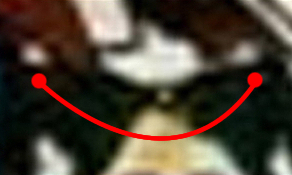 Come avrete certamente notato, nonostante i dettagli in comune, c’è una incongruenza tra le due figure e mi riferisco a questa parte incavata —evidenziata in rosso — poiché tale area concava non trova corrispondenza nell’altra figura .