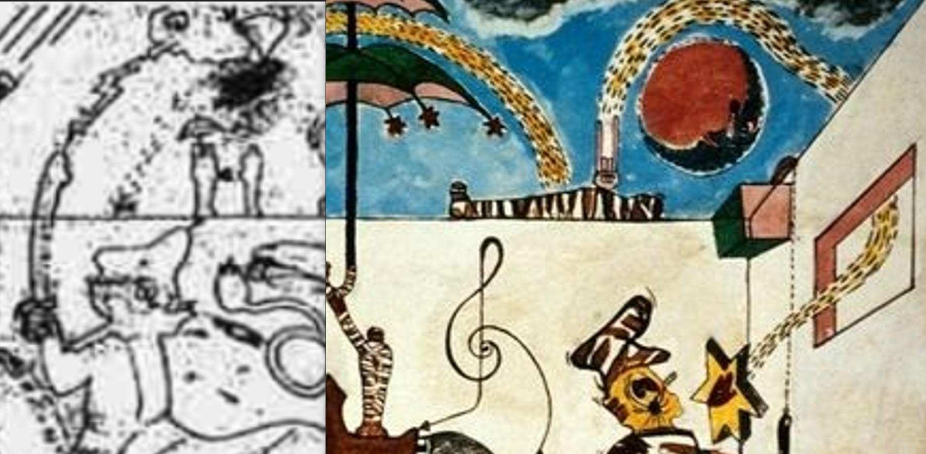 In questo disegno, possiamo cogliere alcuni concetti che il pittore cileno ha espresso in questa scena; e questa sarà la nostra chiave di lettura per interpretare Sogno di Fatascienza.