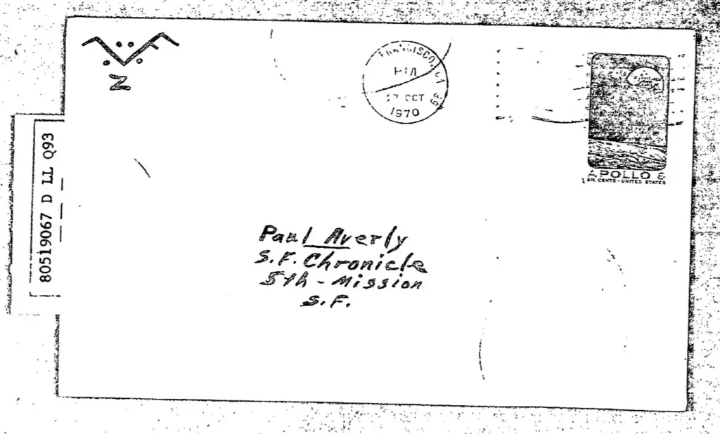 • Zodiac sottolinea le lettere LAV sulla busta della “cartolina di Halloween”