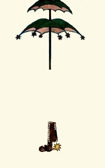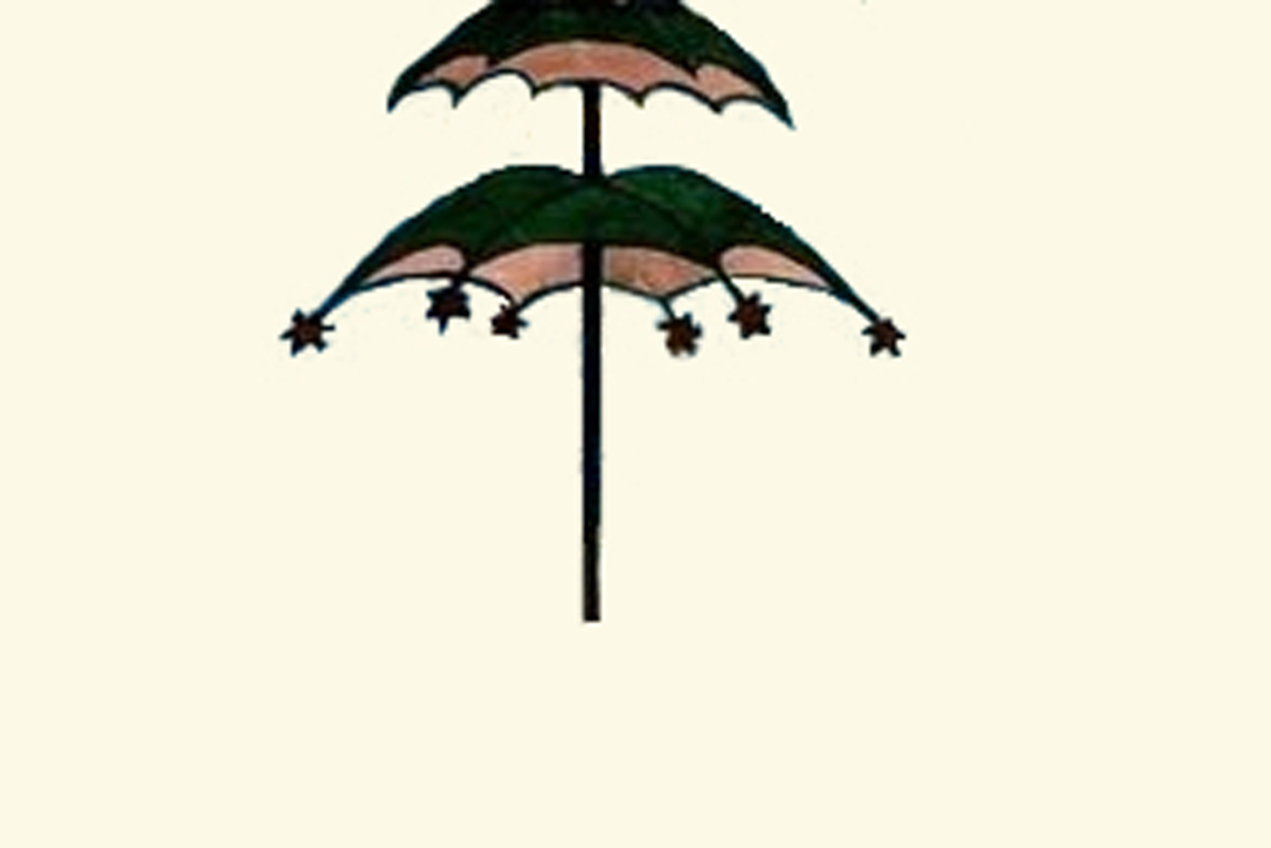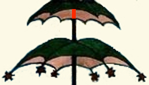 i due ombrelli sorretti dalla stessa asta presentano un numero diverso di punte. L’ombrello superiore ne ha otto, mentre quello inferiore ne ha sei.