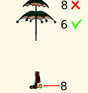 Una traiettoria che, simboleggiata dall’asta, va a indicare (e a centrare) con una direzione precisa l’ombrello a sei punte, escludendo invece quello a otto punte. Si tratta di un tentativo ben riuscito da parte dell’autore di evidenziare il numero sei ed escludere il numero otto attraverso questo metodo ingegnoso.