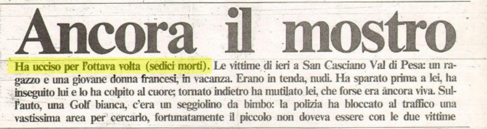Questo passaggio storico è importante perché influenza il modo in cui, ancora oggi, si interpreta il numero dei duplici omicidi attribuiti al mostro.