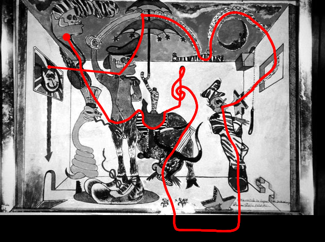 Questo, a mio avviso, è il gioco del fantasioso autore di questo quadro, che, all’epoca, si è espresso artisticamente. Un rompicapo da risolvere, un percorso da seguire, capace di portare gradualmente a galla significati nascosti, che si intrecciano l’uno con l’altro.