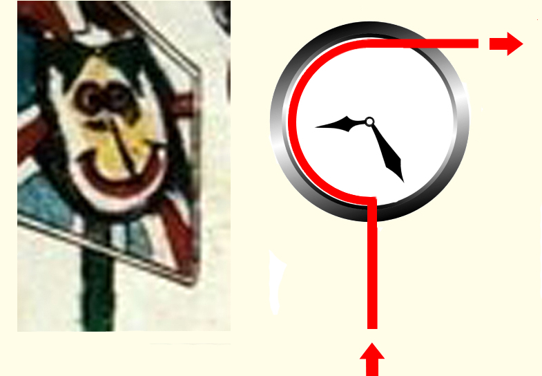 Il riferimento alla Bus Bomb Letter rafforza questa lettura del percorso da seguire nel quadro, poiché in quel contesto l’orologio non è un semplice simbolo, ma parte integrante della logica progettuale dell’autore.