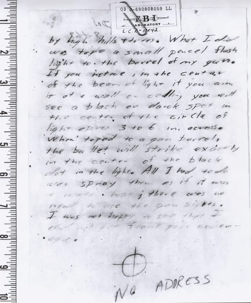 In questo episodio la polizia si chiedeva in che modo avessi potuto sparare e centrare le mie vittime al buio. Non l’hanno detto apertamente questo, ma lo hanno implicitamente sostenuto dicendo che fosse una bella notte luminosa & che potessi vedere le sagome all’orizzonte. Stronzate che l’area fosse circondata da alte colline & alberi.