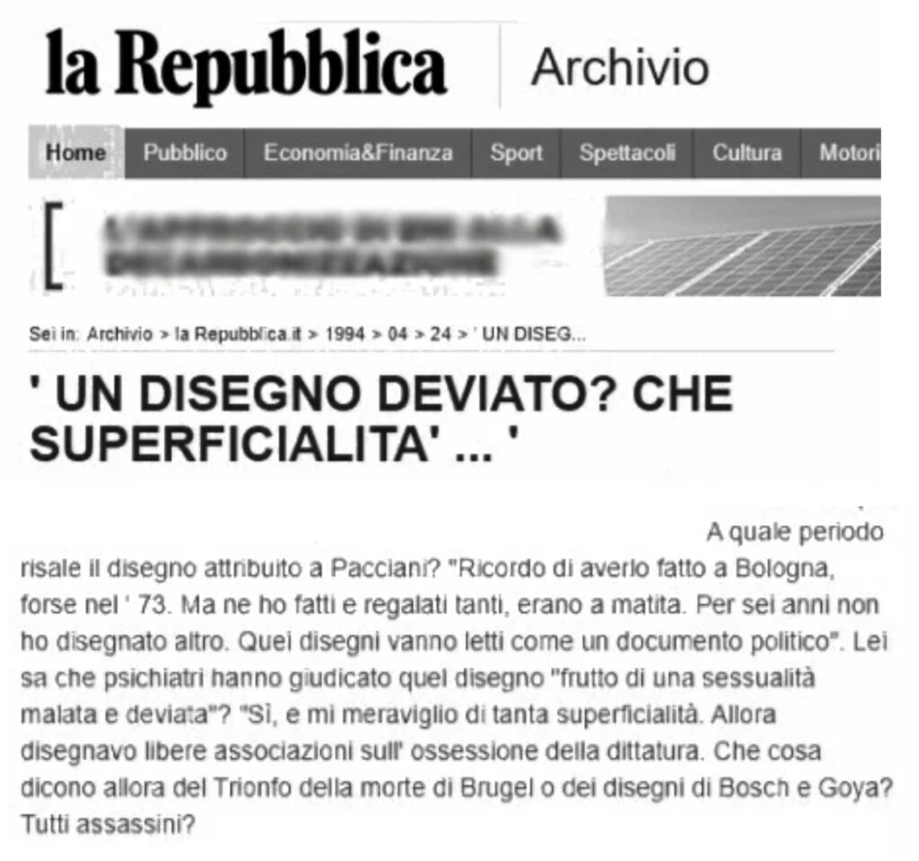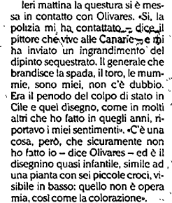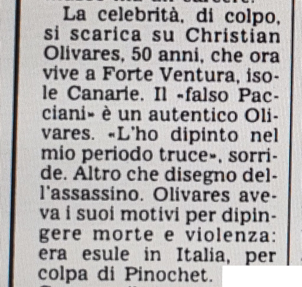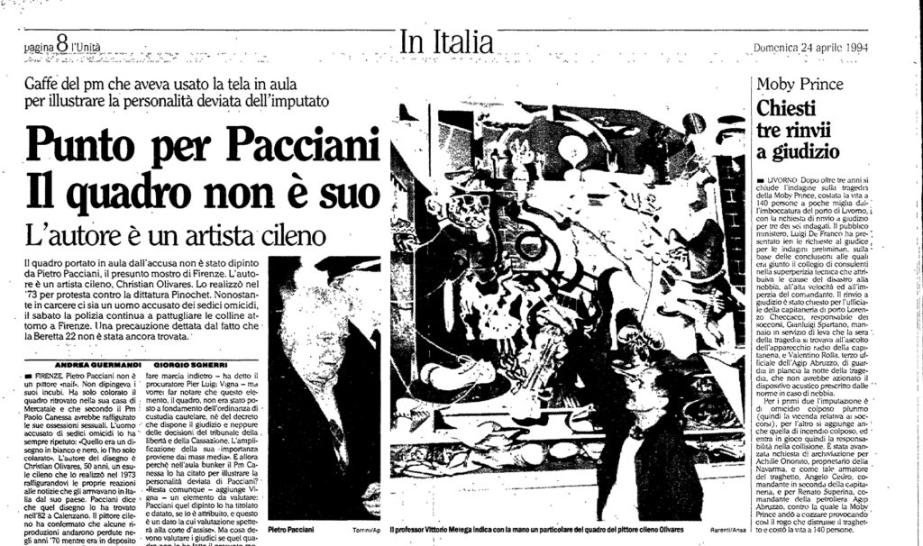 Si scoprì presto però che il vero autore del disegno in bianco e nero non era Pacciani, che diceva di averlo solamente colorato, ma l’artista cileno Christian Olivares, che in quel disegno voleva rappresentare gli orrori della dittatura cilena.