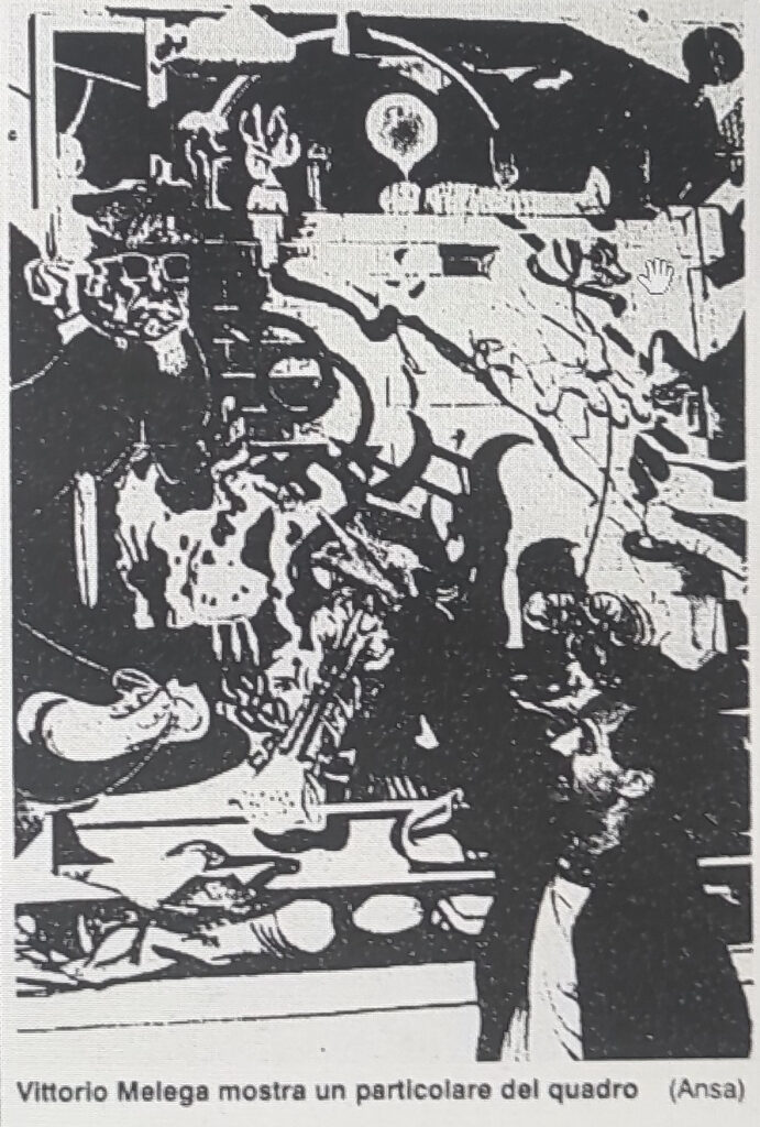 Il quadro è stato esaminato con l’assistenza tecnica del Prof. Vittorino Andreoli, Primario, Psichiatra, il quale da molti anni si interessa, con riconosciuta qualificazione culturale e competenza del significato del linguaggio grafico e dell’espressività pittorica dei malati di mente.”