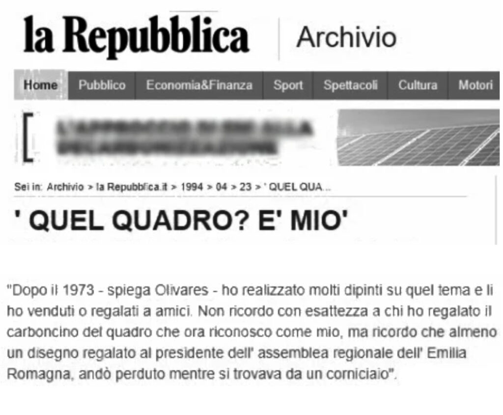 Prima ancora che da Christian Olivares, il quadro era stato riconosciuto da una famiglia bolognese che aveva visto la foto pubblicata su Repubblica.