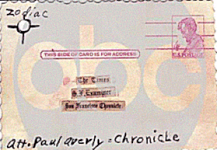 In questa cartolina ci sono dei ritagli aggiunti da Zodiac, delle scritte come: